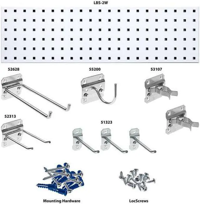 Storing and organizing hand- power- and long handle tools for home- garage- shed and the shop area can be a real challenge. The LocBoard Tool Pegboard Strip Kits are able to easily handle your toughest requirements. The heavy duty steel pegboard strips will hold your odd shaped- heavy items securely in place and keep them visible and readily. The hooks included in the kit have locking tabs on the back that slide onto the pegboard and are locked in. Get those items off the top of the workbench- shelf or floor and put them within easy reach with these creative and useful storage pegboard kits. This kit comes with a selection of 8 hooks in multiple sizes and styles to fit almost any garden or hand tool. Mix and match sizes and colors to brighten up any storage area. This prepackaged value kit provides the storage solution you need and keeps cost at a minimum.