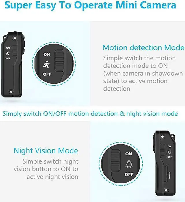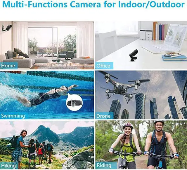 ***** **********Best Quality Guranteed. *****[Super Mini Spy Camera] hidden camera ( 0.59X 2.04X 0.78 inches, 0.88 oz) is the smallest portable mini camera with waterproof case in the world, that the size about as your thumb. Caused the super mini sized, the mini video camera be able to put in a corner to record videos and goes unnoticed by people. Which also perfect for used as a body camera/pet camera/home camera/secret camera/nanny cam hidden camera or sport camera*****[Multifunctional Small Waterproof Camera] Mini underwater camera comes with a durable waterproof plastic case and many practically accessories (bracket, clip, strap etc.