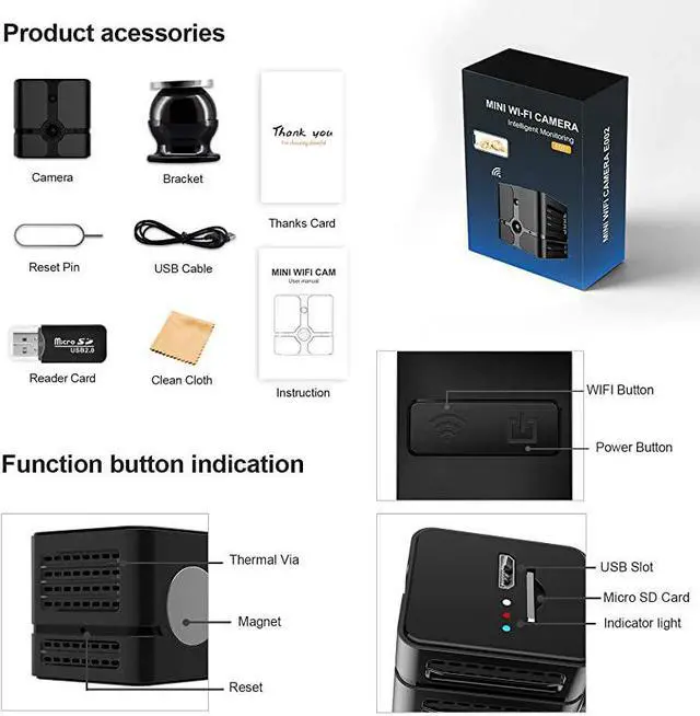 WIFI CAMERA: Spy camera wifi has the smallest size in the world(0, 87in, 0.7 oz). It is hidden for home, office, kids room, warehouse, backyard, garden, a car camcoder, an aerial action etc. *****HIDDEN