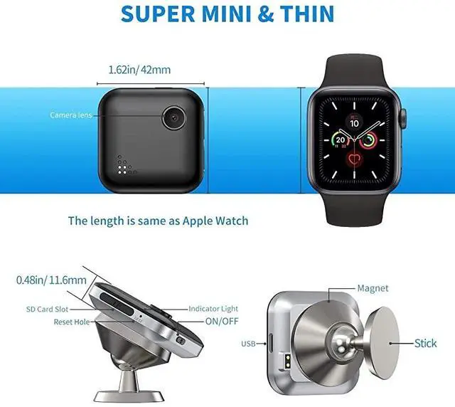 **********[WiFi Camera]This small spy camera has built-in Li Battery. The battery can support 70-90 minutes. The small portable camera can be used outdoor and indoor. And It is perfect to charge the mini camera with power bank outside. *****[Video Recording Camera]After you insert a micro sd card in the camera, the camera will record video without wifi. Then you can see playback on your phone or on computer as timestamp.