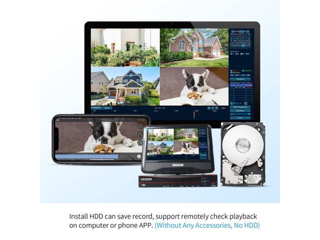 Multiple playback modes: NVR without HDD, if you want to check the record, please install HDD at first, then system allow to check the record on phone app, Computer software and NVR monitor.
