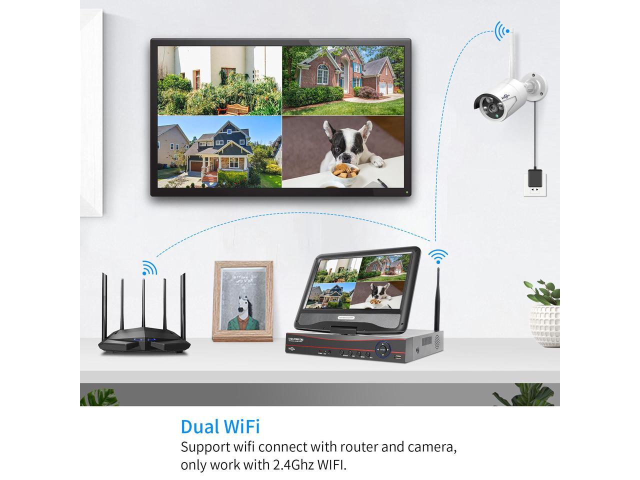 Dual WiFi: Comes with built-in Wi-Fi router - NVR (network video Recorder) is a recorder with built in router. It receives and records all cameras with its own bandwidth, consuming 0 bit from your home router.