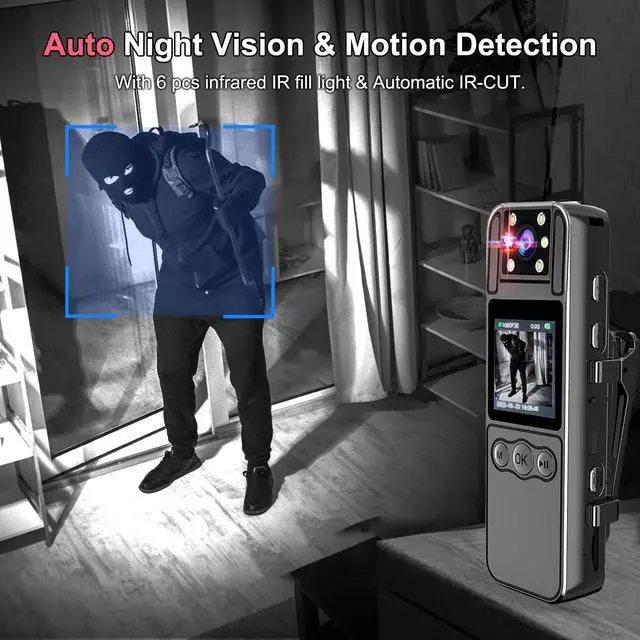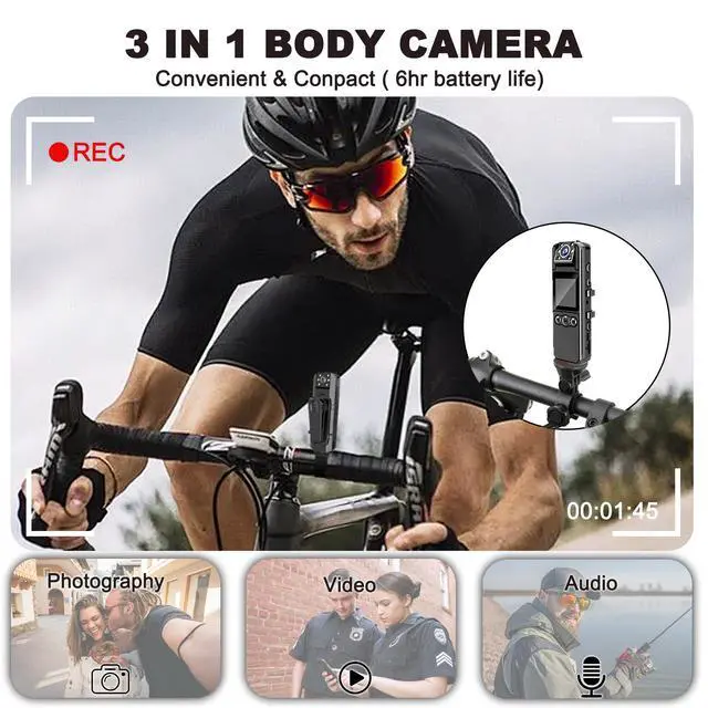 Body Camera 128GB with 1.4 in Screen & 180° Rotating Lens