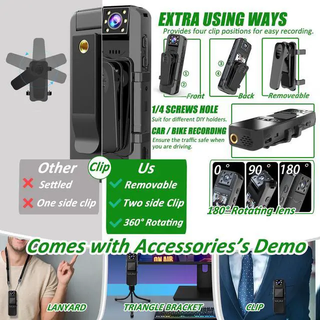 Double-Sided Clip can help you mount camera easily, choose one side [ with screen or not ] to mount on your clothes