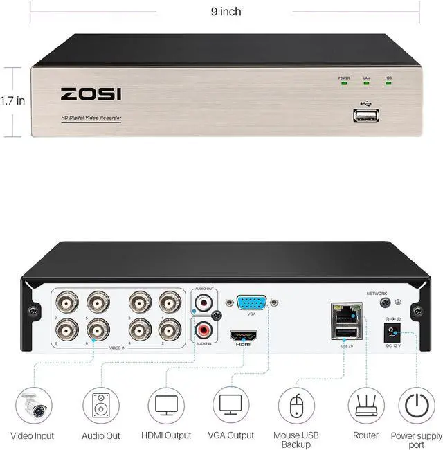 Easy setup and remote access: This wired DVR is easy to setup and connection. And it supports family share, so your family member all can remote access and live view anytime anywhere via ZOSI Smart App. Stay connected and monitor your property remotely, ensuring the security of your home or business, even when you're away. For optimal compatibility and full feature access, pairing with ZOSI analog cameras is highly advised.