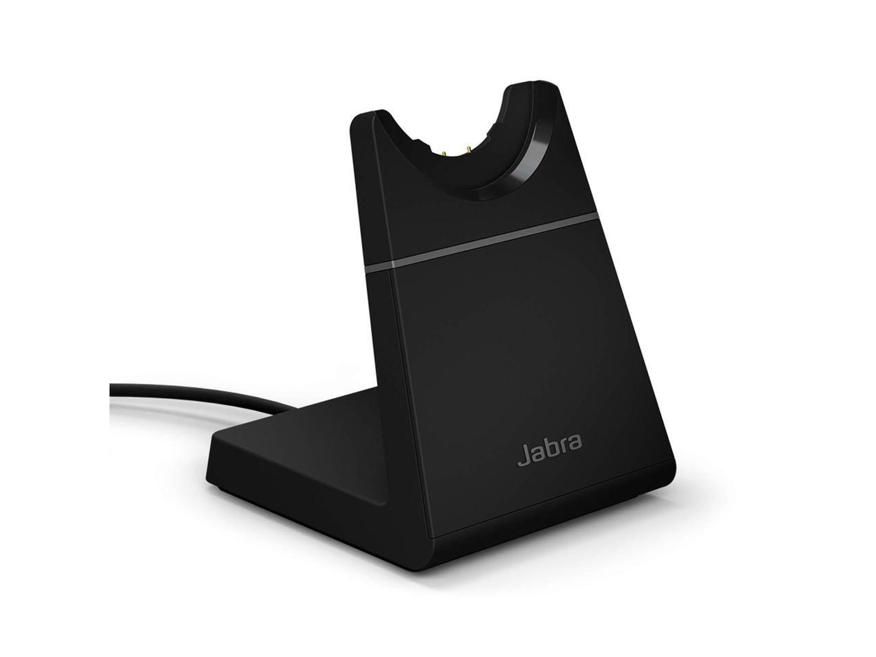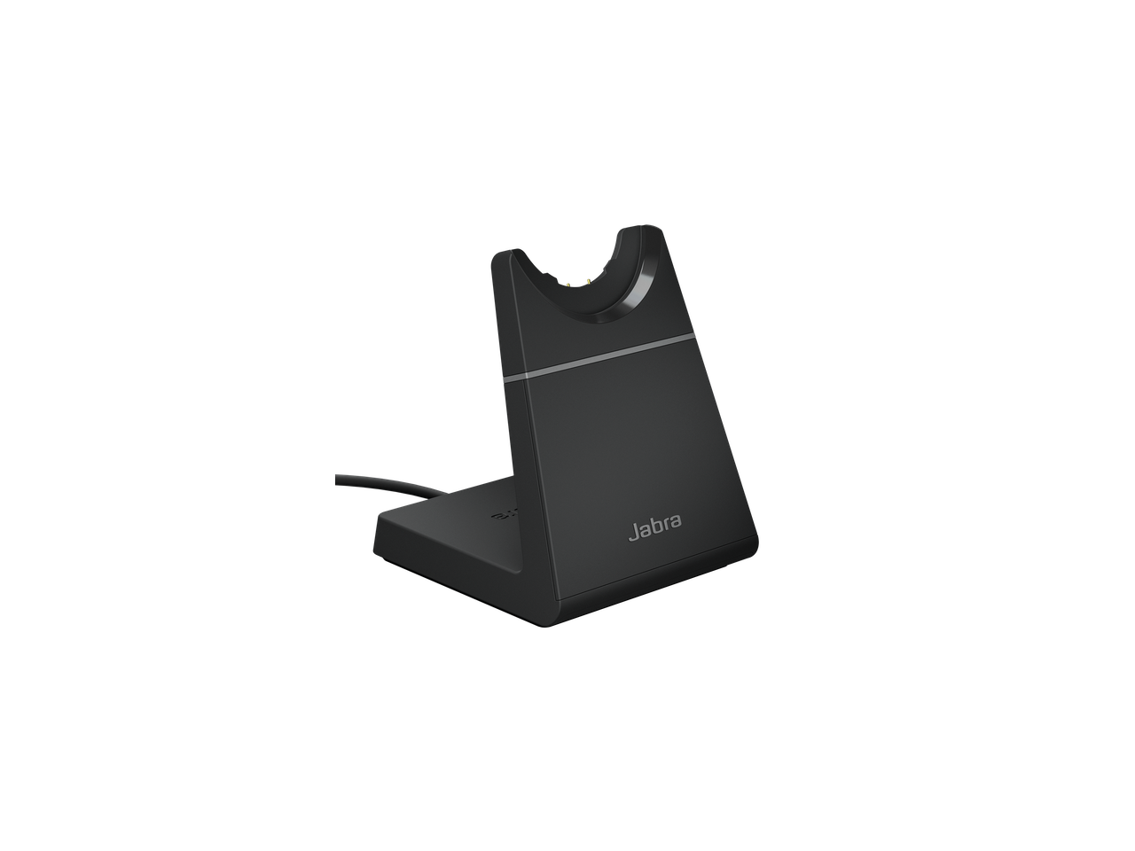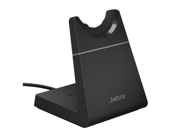 - The charging stand for Jabra Evolve2 65 provides easy and convenient charging and storage at your desk.