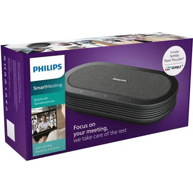 The Philips SmartMeeting Conference Microphone and Sembly Meeting Assistant take part in meetings with you as your dedicated note takers. The microphones smart speech-enhancing and noise-filtering technology ensures clear and natural sounding calls. Sembly creates automatic transcripts, summaries and highlights action pointsand to dos for you. The solution helps you find out who said what easily and quickly after every meeting, even if you could not attend.