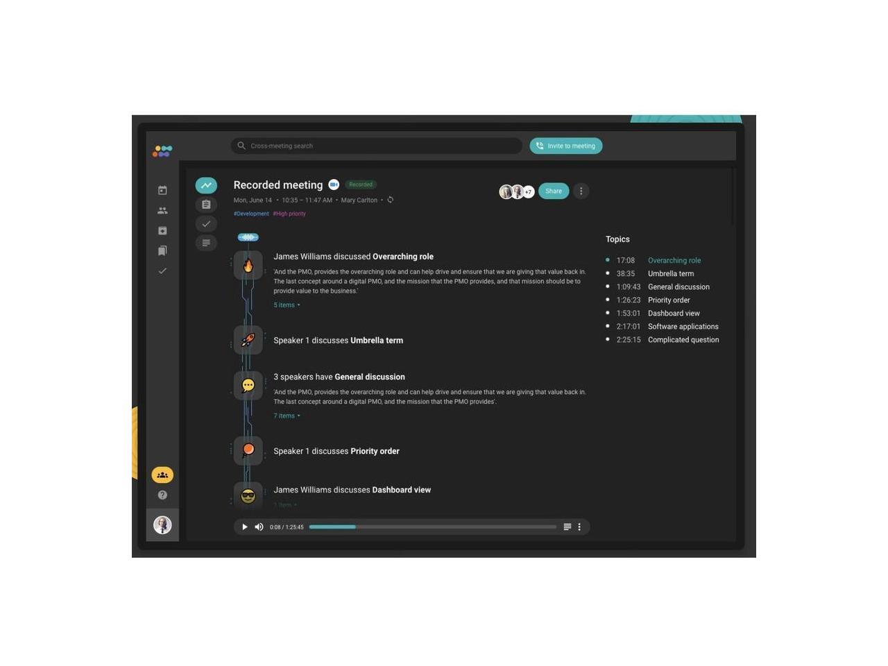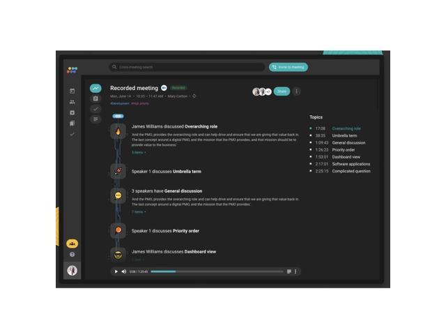 Plug-and play connectivity via Bluetooth or USB for easy setup. Automatic minute taking to help you focus on your meetings. Sembly works with all major platforms such as Microsoft Teams, Google Meet and ZOOM. Recording distance up to 20 feet and up to 12 people.