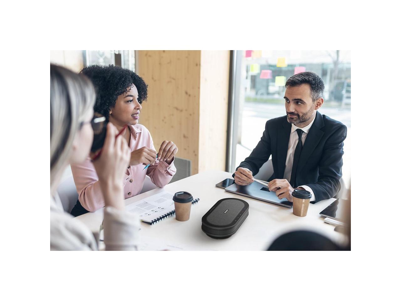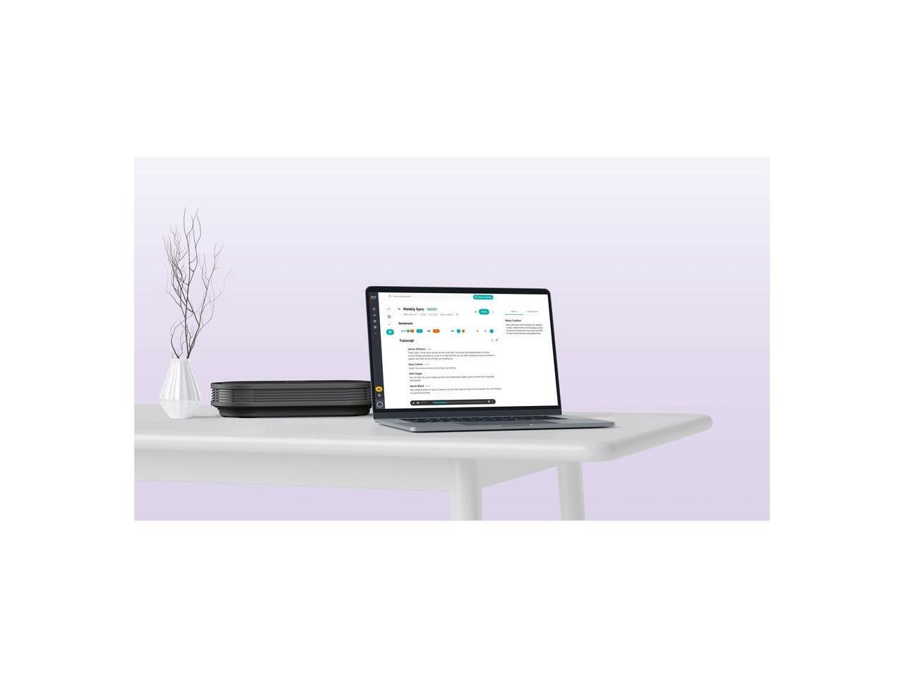 360° recording with high-quality 6-array microphone for clear meeting recordings. Integrated Sembly AI automatic meeting minute taking and summary. Automated meeting action points for saving time. Integrated re-chargeable battery up to 10 hours runtime. OPERATION CONDITIONS: Temperature: 5° 45° C / 41° 113° F, Humidity: 10 % 90 %.