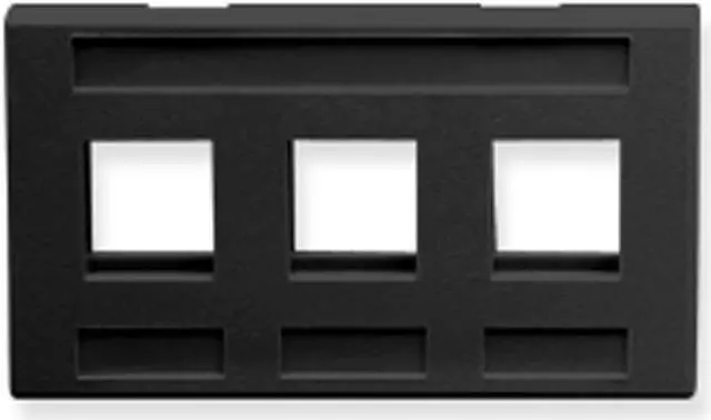 The ICC Corp IC107FM3BK black 3-port modular furniture faceplate is designed for use in modular furniture, raceways, and accepts any of ICCs modular connectors. The faceplate fits openings of approximately 2.56" W x 1.30" H" x 0.19" D. Also known as -3-port Furniture Faceplate-Icc ICC-IC107FM3BK 3-Port Mod Furn Faceplate Black-ICC FACEPLATE- FURNITURE- 3-PORT- BLACK ICC-IC107FM3BK