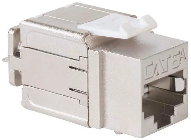 The ICC Corp IC1078S6A0 CAT 6A high-density (HD), FTP shielded modular jacks (8P8C) is designed to deliver advanced performance for 10G applications and backward compatibles with CAT 6 and CAT 5e systems. CAT 6A high-density (HD) FTP die-cast connector and wire cap shields and protects vital network terminations from harmful Electromagnetic Interference (EMI) commonly present around power cables, heavy machinery and external noises that causes alien crosstalk along the path of a signal. CAT 6A FTP shielded modular jacks (8P8C) innovative high-density (HD), split pairs termination allows the jack to be terminated with traditional single blade punch down tool (ICACSPDT00) or ICCs 4-pair JackEasy tool (ICACSPDTEH).