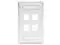 This flush-mounting faceplate accepts Hubbell Premise Wiring Xcelerator jacks and SF Series snap-in multimedia and fiber connectors, available separately. TIA/EIA-606 labels are located over each of the screw-mounted holes. Faceplate, 4 Port