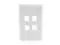 This flush-mounting faceplate accepts Hubbell Premise Wiring Xcelerator jacks and SF Series snap-in multimedia and fiber connectors, available separately. TIA/EIA-606 labels are located over each of the screw-mounted holes. Wall Plate, 4 Port