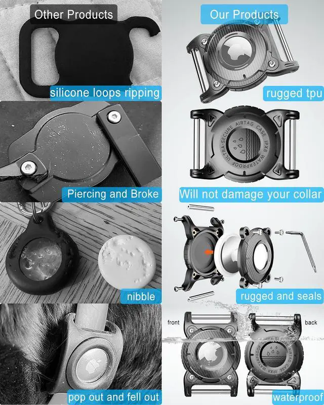 The dog collar airtag holder waterproof that's minimalist without being limiting, so that you can carry it and always find what you need with this Airtag holder for dog collar. Dog collar with airtag holder is also very suitable for dog, cat and other pets collar. It is not afraid of rain!