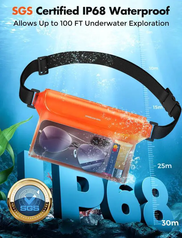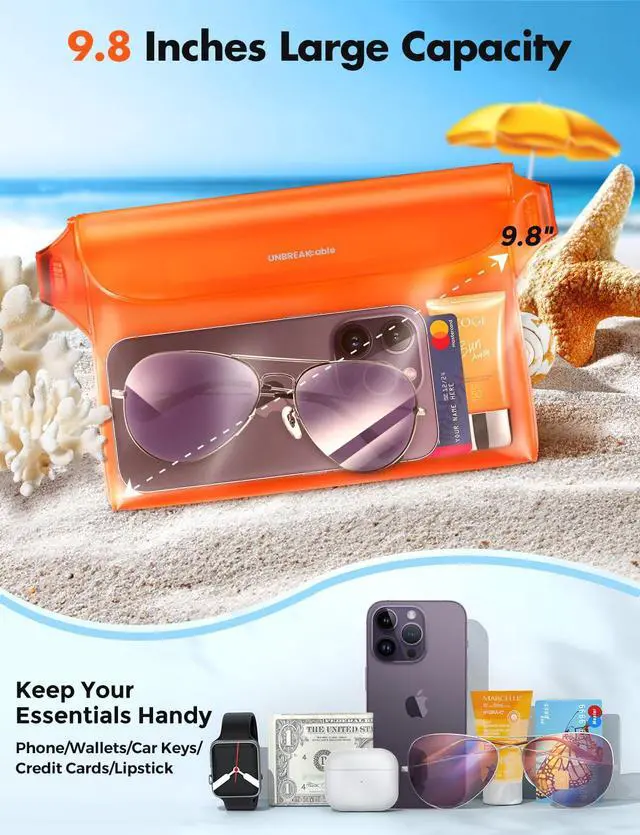 Large Capacity 9.8'' : This year, the front window has been expanded to 9.8'' This makes it hold more items and suitable for a wide range of water activities such as swimming, boating, kayaking, skiing, surfing, snorkeling, etc.