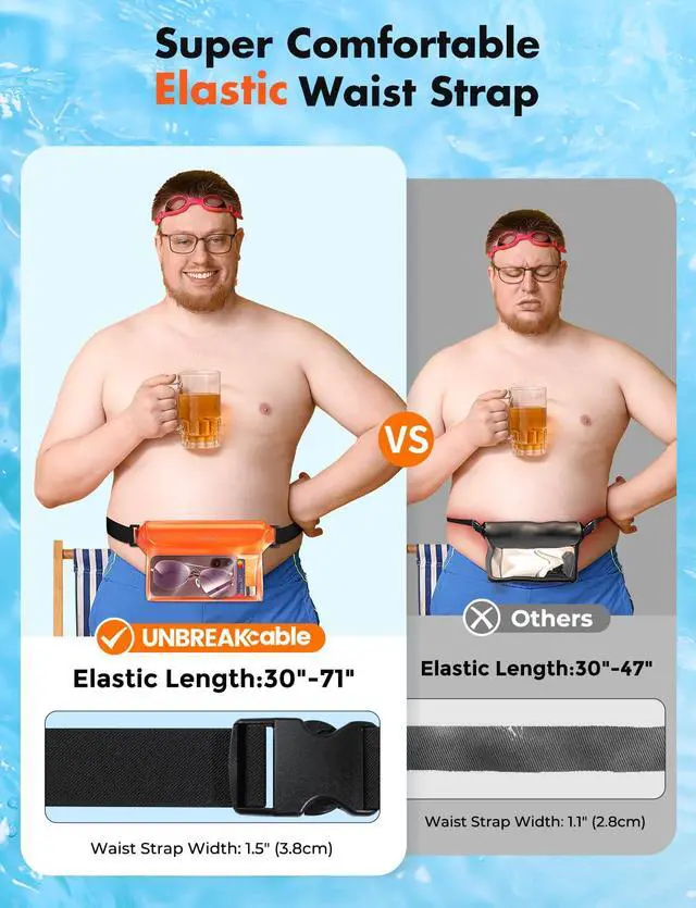 Adjustable Waist Strap: With an easy-to-adjust design, our waterproof phone bag comfortably fits most waist sizes (30 to 71 inches) and Waist Strap Width is 1.5". It can be worn in various ways, such as a waist bag, crossbody bag, shoulder bag.