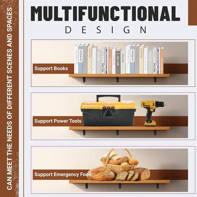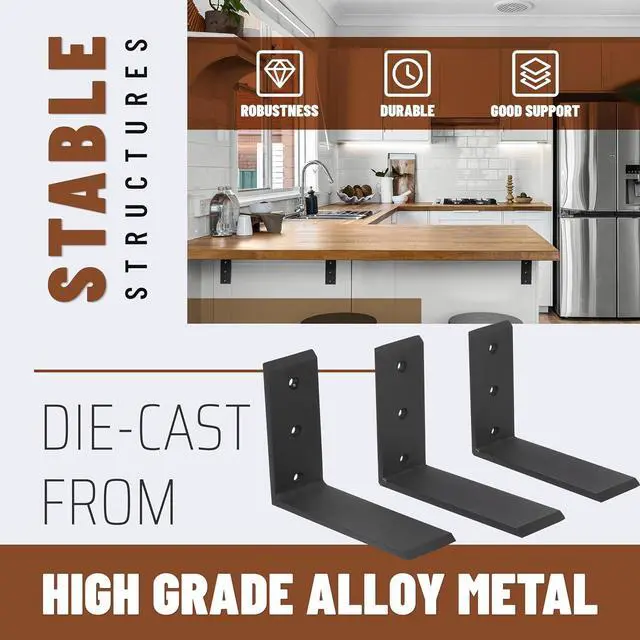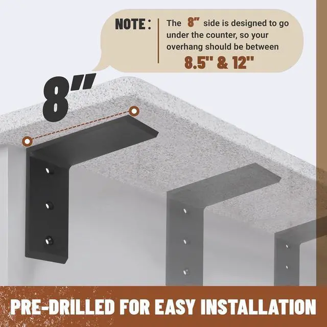 Package & Installation: 3 pcs of Countertop Support Brackets. Brackets are pre-drilled for easy installation. They work well in supporting counter tops and many other applications