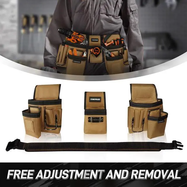 [Adjustable Design & Customizable Layout] The COMOWARE tool belt features an adjustable waistband (31.549.2) with heavy-duty buckles, ensuring a secure fit for all body types. Three detachable modular pouches (17 pockets total) allow flexible organizationattach only what you need for lightweight DIY tasks or full construction projects.