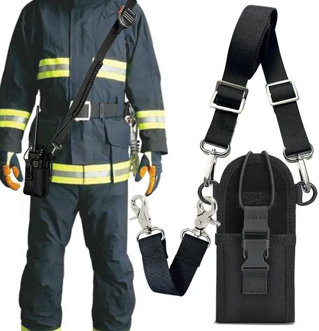 Adjustable Length extra long to help cover your entire shoulder. slide its adjustable clip up to shorten the strap, or down for more slack.adjust from 36" to 66", which can be adjusted freely for your demand. adjustable mobile mic loop to easily adjust your fit. The straps hardware is also durable and functional. includes an anti-sway strap to prevent radio movement during high-intensity activities.
