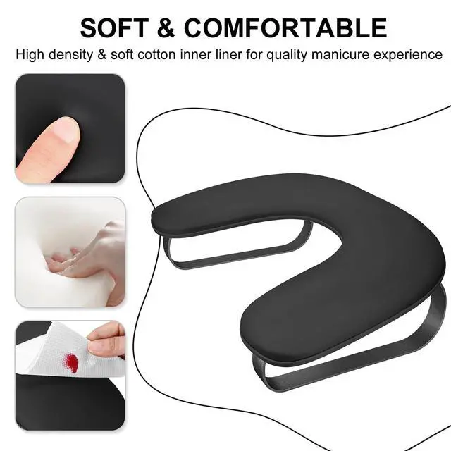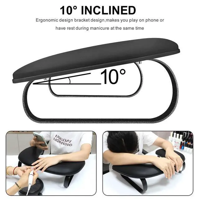 Ergonomic Design:U-shaped manicure hand rest is engineered with 10-degree incline that aligns with ergonomic principles,allowing client to lie down to sleep or spend some time on the phone in a comfortable posture.For nail techs, this hand rest can make it easier to do nails as clients keep their hands and wrists at an easier angle for them to reach.
