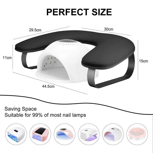 Big & Space Saving:Our arm rest for nails has enough height and larger space to place nail art machine,which can accommodate most of nail lamps,nail dust collector,nail drill and other nail art tools on the market and saving space on the manicure table and improving the efficiency of nail art.This manicure arm rest for nails tech makes your work area look neat and professional! Perfect for nail salon and home DIY nails use.