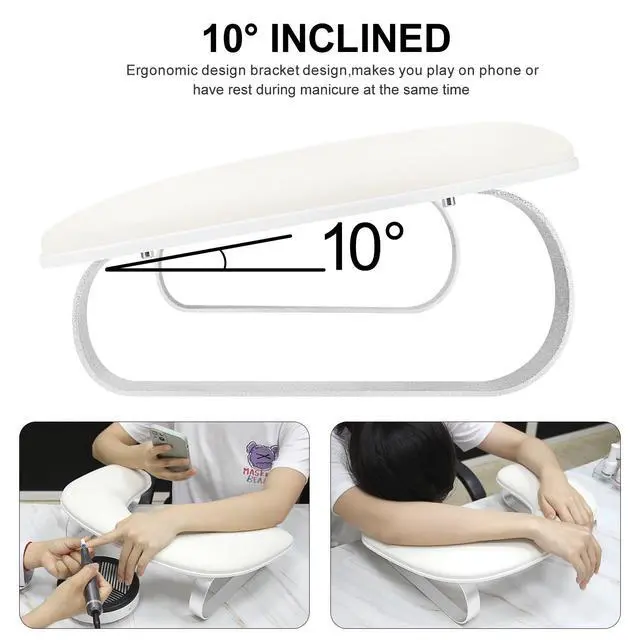 Ergonomic Design:U-shaped nail hand rest is engineered with 10-degree incline that aligns with ergonomic principles,allowing client to lie down to sleep or spend some time on the phone in a comfortable posture.For nail techs, this armrest for nails can make it easier to do nails as clients keep their hands and wrists at an easier angle for them to reach.