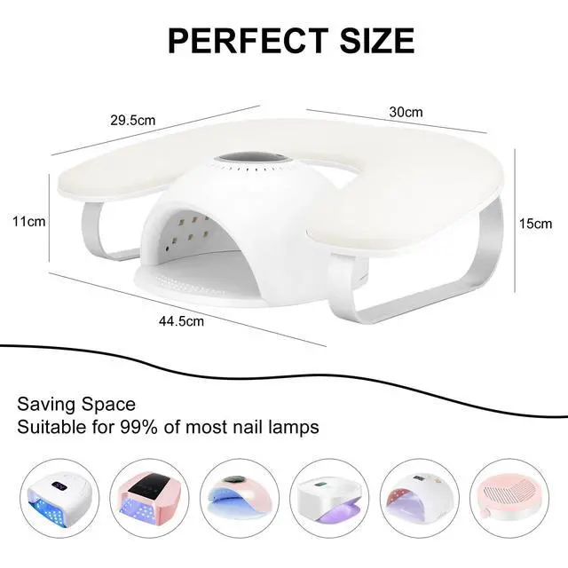 Big & Space Saving:The arm rest for nails tech has enough height and larger space to place nail art machine,which can accommodate most of nail lamps,nail drill,nail dust collector and other nail art tools on the market and saving space on the manicure table and improving the efficiency of nail art.This manicure hand rest pillow for nails tech makes your work area look neat and professional! Perfect for nail salon and home DIY nails use.