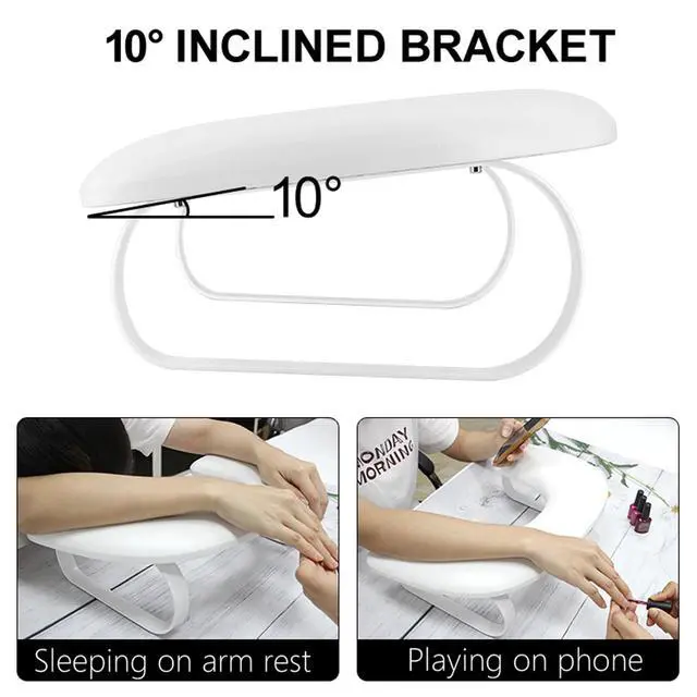 Ergonomic Design:U-shaped Nail arm rest pillow is engineered with 10-degree incline that aligns with ergonomic principles,allowing client to lie down to sleep or spend some time on the phone in a comfortable posture.For nail techs, this manicure arm rest can make it easier to do nails as clients keep their hands and wrists at an easier angle for them to reach.