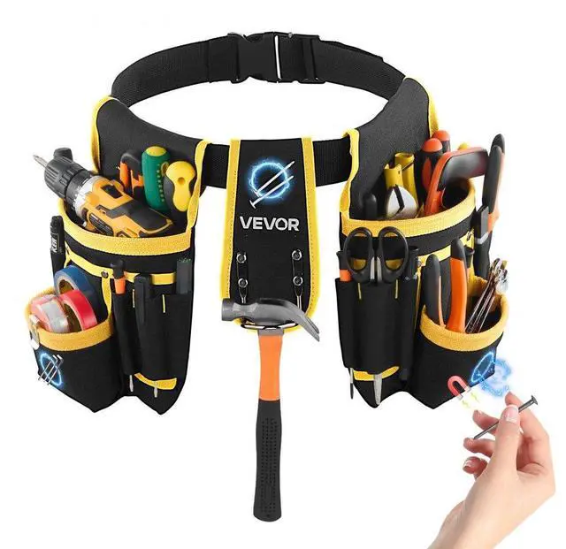 Tool Belt, Magnetic Tool Pouch for Men, 28 Pockets Heavy Duty Adjustable Utility Belt Detachable Work Bag for Electrician, Carpenter, Construction, Work Apron Organizer, Waist Adjust 31 to 48in