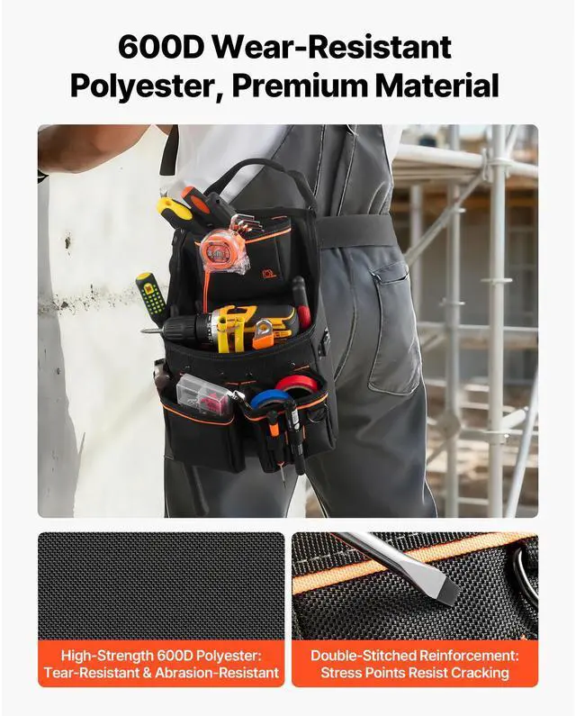 Tool Pouch with Belt, 14 Pockets Professional Tool Belt Pouch for Men, Heavy Duty Detachable Adjustable Utility Work Bag for Electrician, Carpenter, Construction, Adjusts Waist 32 to 50 Inches