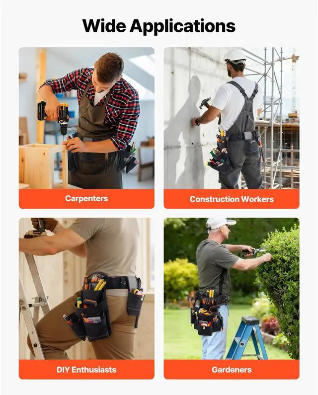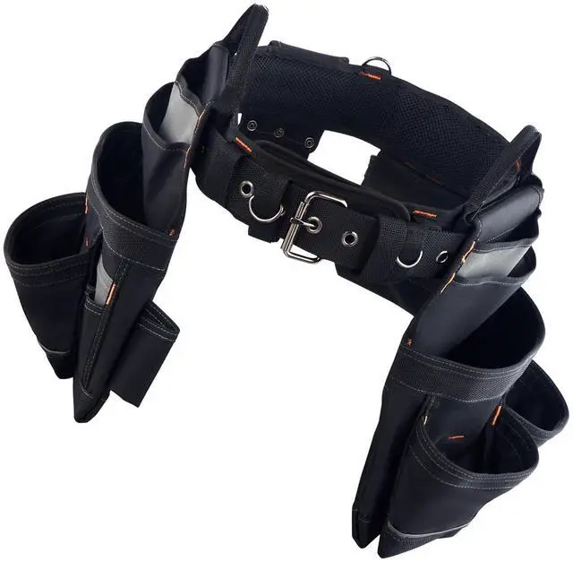Tool Belt, 18 Pockets Professional Tool Pouch for Men, Heavy Duty Adjustable Utility Belt Detachable Work Bag for Electrician, Carpenter, Construction, Work Apron Organizer, Adjusts 31in to 51in