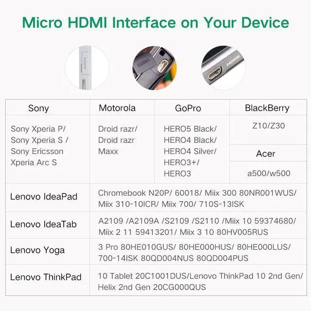 - Gold-Plated Connectors: The Micro HDMI to HDMI cable features gold-plated connectors that resist corrosion for signal purity