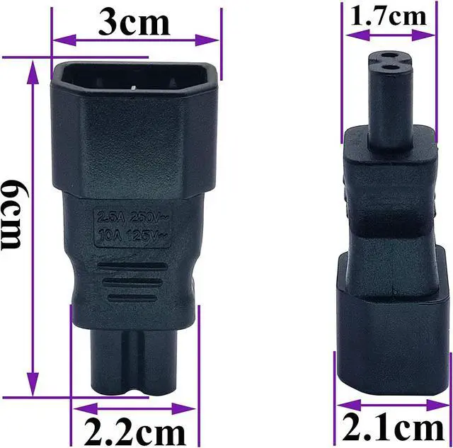 Connectors 2: (C7) (Figure 8) 2 Pole Female jack Power Adapter C7 to C14 Plug Adapter; Convert your C13 power cord to 2 Pole IEC 320 C7 female port without extra cable convenient adapter often used to convert a LED TV etc Maximum Rated