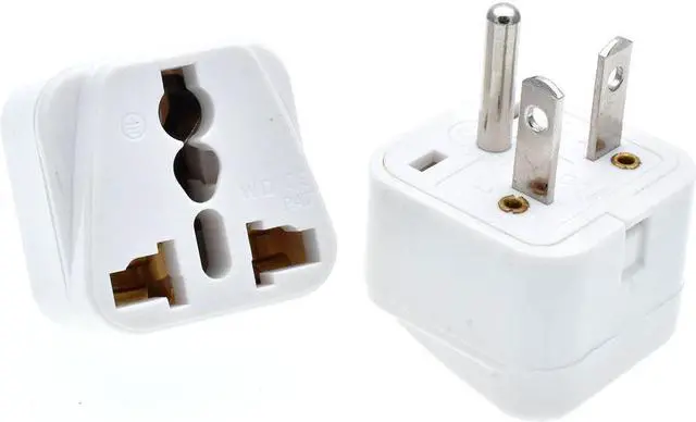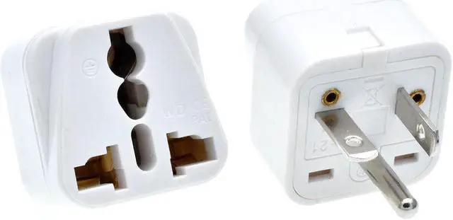 Universal America, Canada NEMA 6-20P plug adapter. Connects European, British, UK, Australia, NEMA (Straight Blade, Non-Twist Lock), and other international plugs with NEMA 6-20R (15 amps, 208-240 volts) outlets.