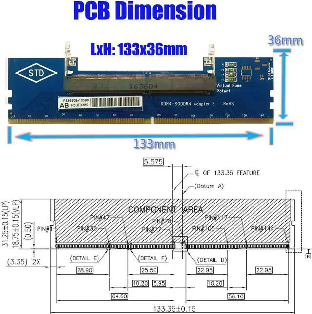 Features: 1. Supports 2133Mhz Frequency SO DDR4 Memory 2. 4-Layered PCB Design 3. Compliant with JEDEC Specifications 4. Over-Current Protection Design 5. PCB dimension (LxH): about 13.3 x 3.6 CM