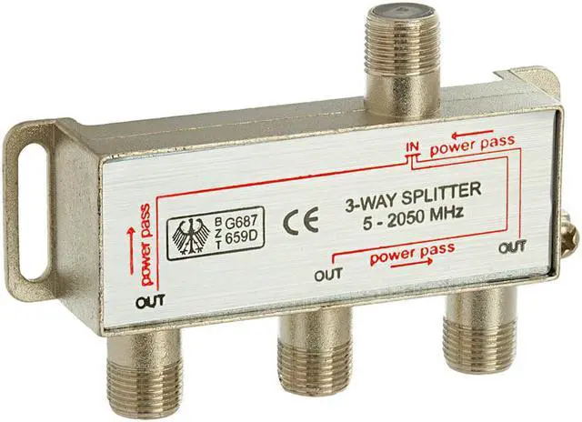 This 3-way Signal Splitter splits a coaxial video signal from cable TV, antenna or a VCR for connection to 3 TVs/VCRs.