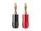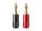 Monoprice Affinity Series Banana plugs make speaker installations easy. They are designed for use with amplifiers or speakers that use binding posts. These high quality plugs feature a dual screw fastening system that can accept bare speaker wire from 10 to 18 AWG. Each pair comes with one plug color coded red and the other coded black, for easy polarity identification. The plug body is made of copper fitted with a ferromanganese tip. The entire plug is then plated with gold to help prevent corrosion.