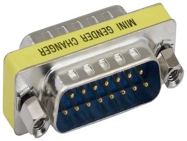Converts a DB15-pin female connection to a DB15-pin male connection
