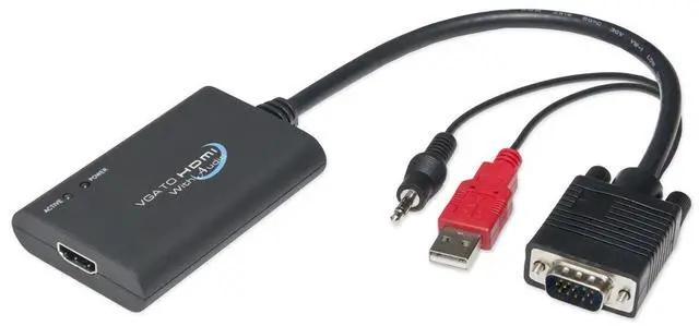 Converts VGA Source to HDMI Display Supports Audio Function for HDMI Monitor and TV HDMI/ HDCP Compliant LED Indicators for Power and Activity Powered by USB Port Cable Length: 8" Style:Syba VGA to HDMI SYBA SY-ADA31025 VGA to HDMI Converter with Audio Support. Built-in Audio, USB Powered, Support 1920x1080. Enjoy better display quality on new LED monitor and TV. Save energy too .