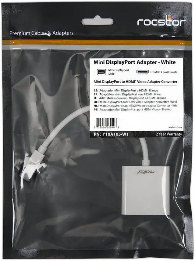 Rocstor Y10A105-W1 Rocstor Mini DisplayPort/HDMI Audio/Video Adapter - Cable Length: 5.9" - Mini DisplayPort/HDMI for Projector, Monitor, MacBook, MacBook Air, MacBook Pro, Mac mini, Ultrabook,