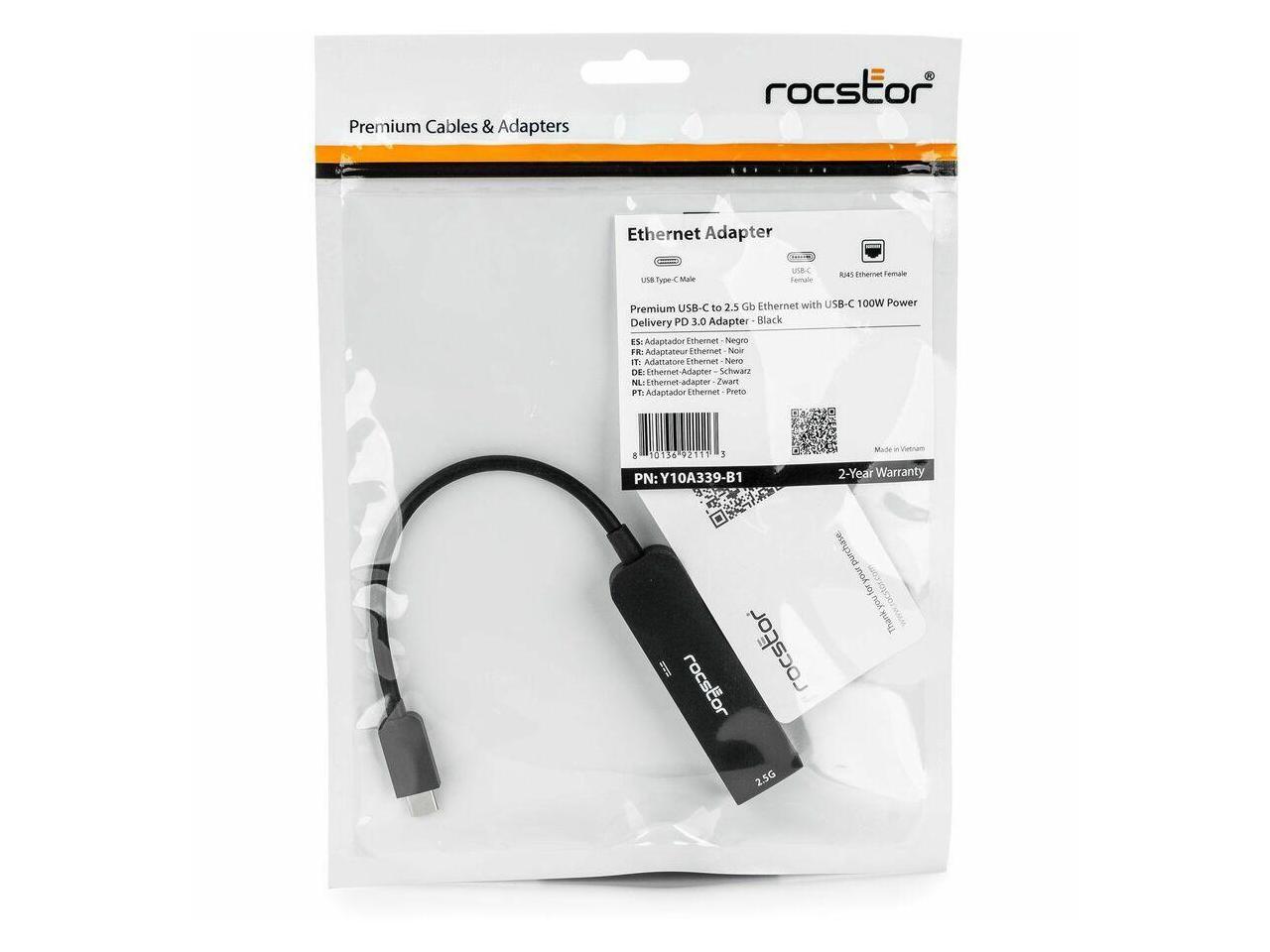 Rocstor USB-C to 2.5G Ethernet Adapter with 100W Power Delivery Y10A339-B1