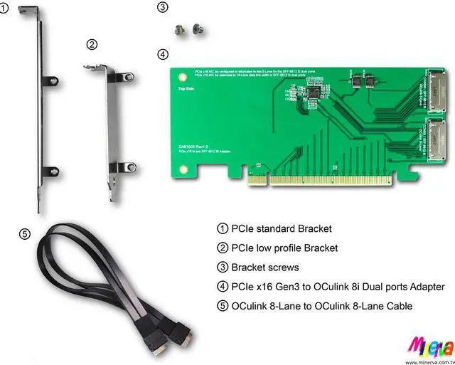 * Build in OCulink(SFF-8612) 8i connector 2 sets, pin-out defined by SFF-9402