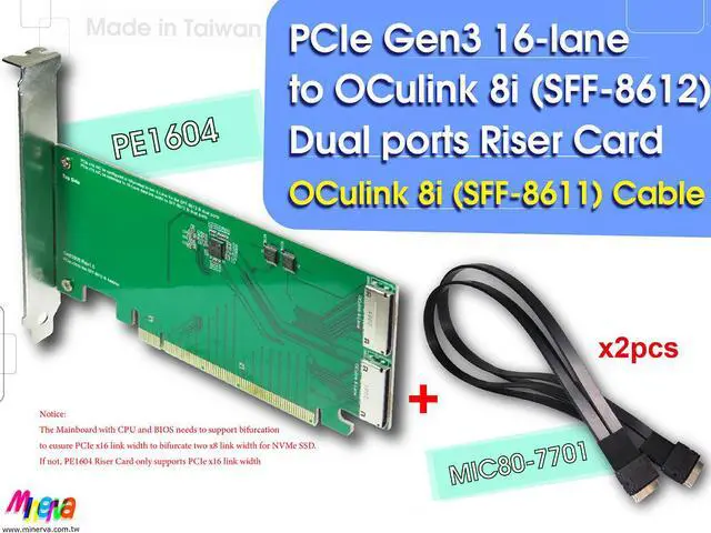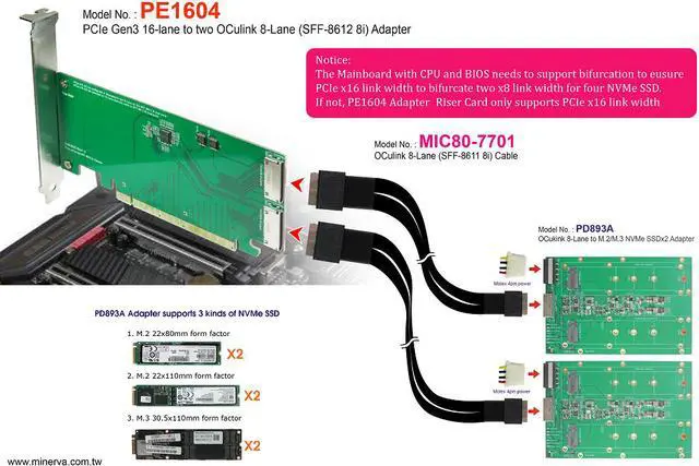 * PE1604 can be bifurcated in quad x4 data link width configurations (need CPU and BIOS both support)