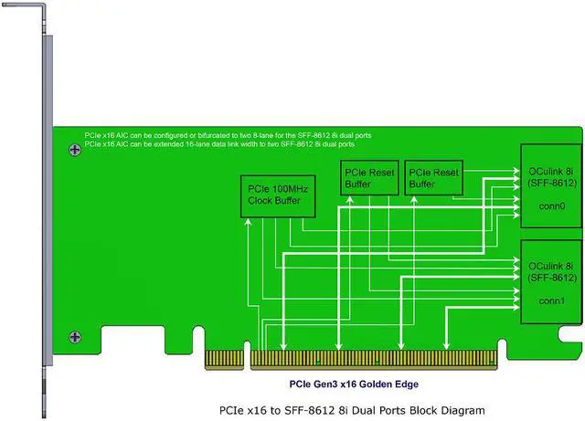 * Eight internal lanes per OCulink 8i port, 6.4G b/s per port