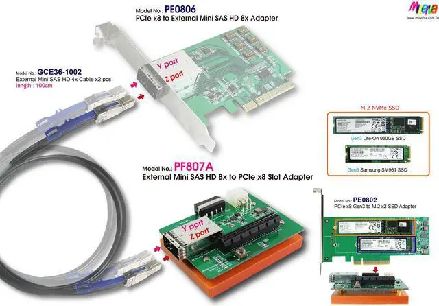 * External miniSAS 2x(SFF-8644) to PCIe x8 convert