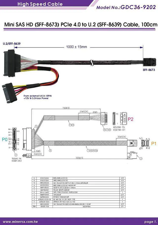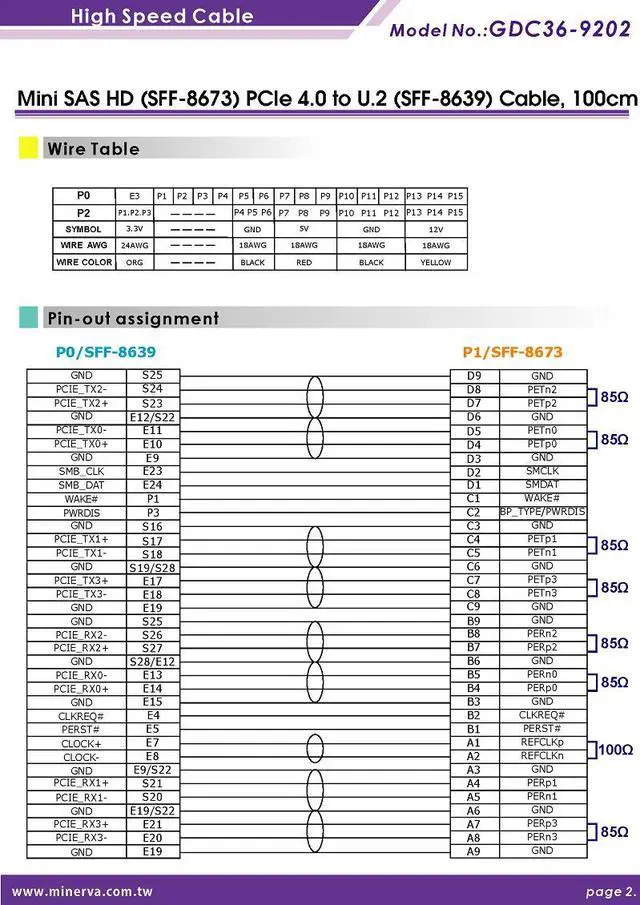 Product Description: Mini SAS HD (SFF-8673) PCIe 4.0 to U. 2 (SFF-8639) Cable