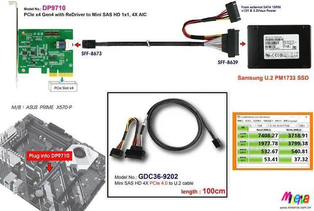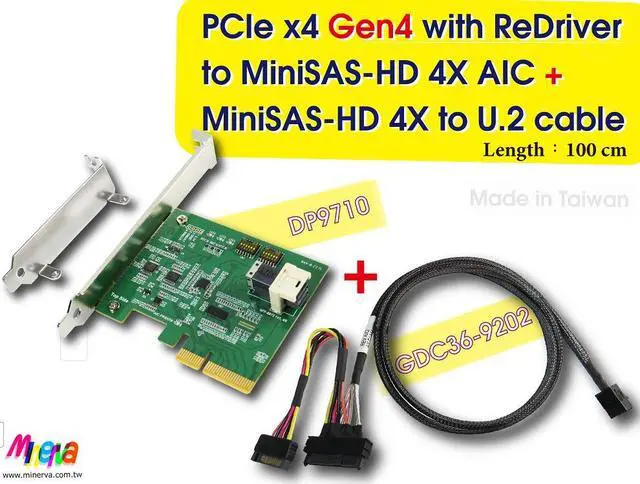 * Mini SAS HD 1x1, 4X to PCI Express x4 Gen4 convert