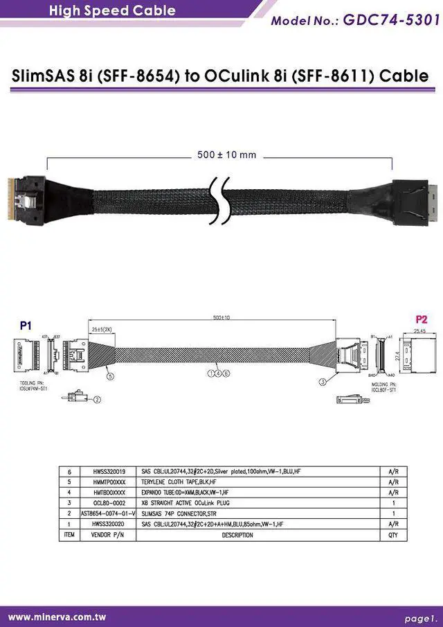 * Built-in SlimSAS 8i(SFF-8654), 30udual port connector