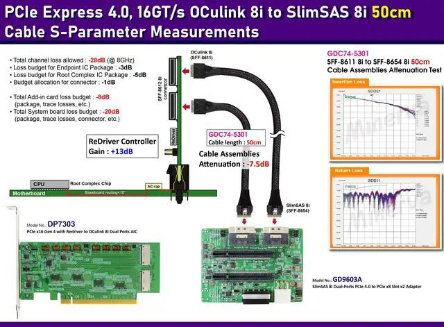 Product Description: PCIe 4.0 SlimSAS 8i to OCulink 8i cable