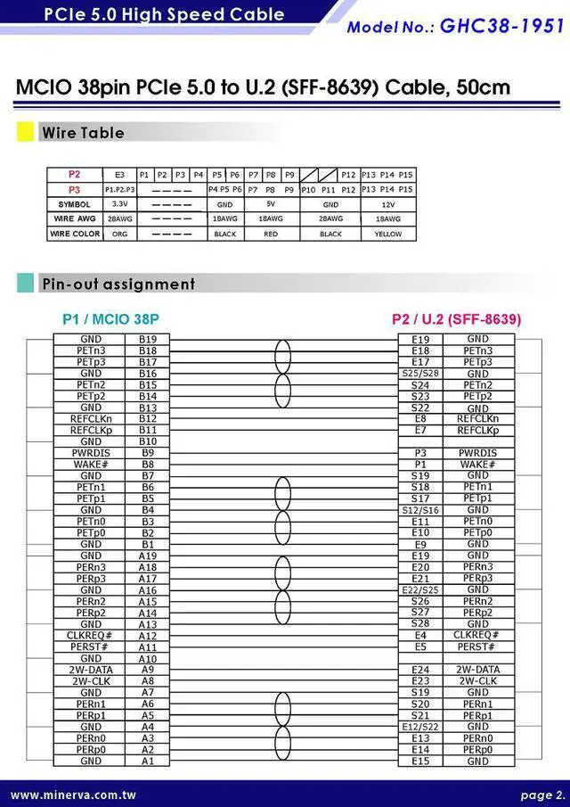 Product Description: MCIO 38P (SFF-TA-1016) to U. 2(SFF-8639) Cable